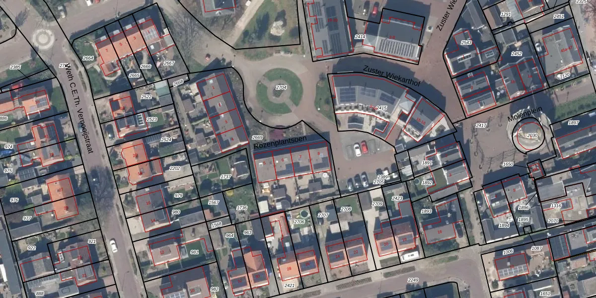 Het perceel waarop Rozenplantsoen 7 staat heeft een oppervlakte van 1421 m². Dit is een zeer groot perceel. De perceeloppervlakte wordt geregistreerd door het Kadaster. Gedetailleerde informatie over de maten van dit perceel kunt u vinden in het rapport Kadastrale kaart met maatvoering van Rozenplantsoen 7.