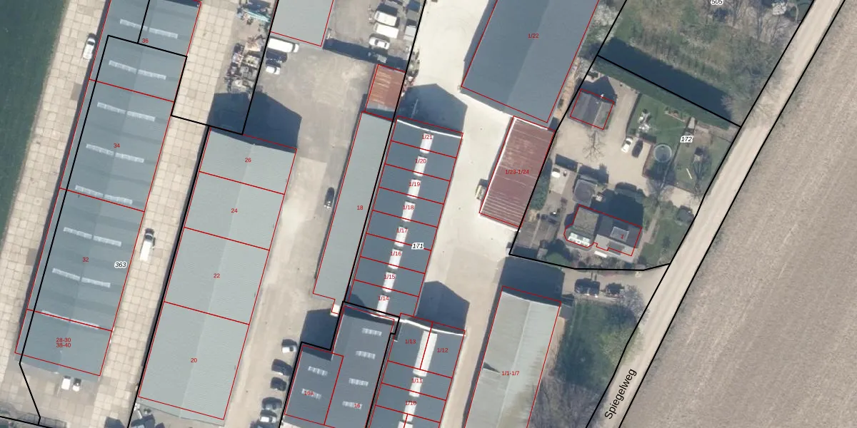 Spiegelweg 1-18 is gelegen op kadastraal perceel CTN00D171. Deze kadastrale aanduiding is uniek en wordt gebruikt door het Kadaster om eigendomsrechten en andere zakelijke rechten vast te leggen. Het perceel maakt onderdeel uit van de kadastrale gemeente Cothen.