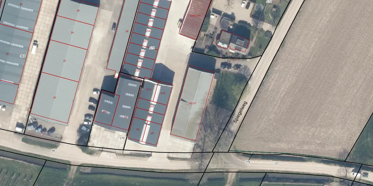 Spiegelweg 1-3 is gelegen op kadastraal perceel CTN00D171. Deze kadastrale aanduiding is uniek en wordt gebruikt door het Kadaster om eigendomsrechten en andere zakelijke rechten vast te leggen. Het perceel maakt onderdeel uit van de kadastrale gemeente Cothen.