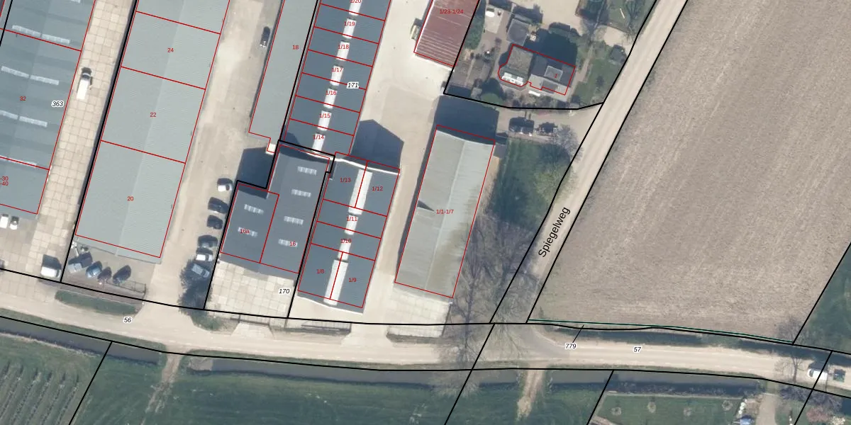 Spiegelweg 1-4 is gelegen op kadastraal perceel CTN00D171. Deze kadastrale aanduiding is uniek en wordt gebruikt door het Kadaster om eigendomsrechten en andere zakelijke rechten vast te leggen. Het perceel maakt onderdeel uit van de kadastrale gemeente Cothen.