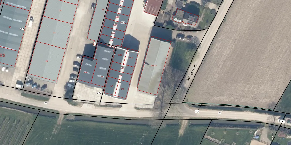 Spiegelweg 1-5 is gelegen op kadastraal perceel CTN00D171. Deze kadastrale aanduiding is uniek en wordt gebruikt door het Kadaster om eigendomsrechten en andere zakelijke rechten vast te leggen. Het perceel maakt onderdeel uit van de kadastrale gemeente Cothen.