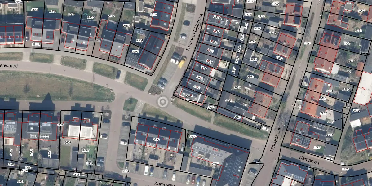 Gebruik de zoekbalk of klik op een perceel voor informatie over de adressen binnen dit perceel.
