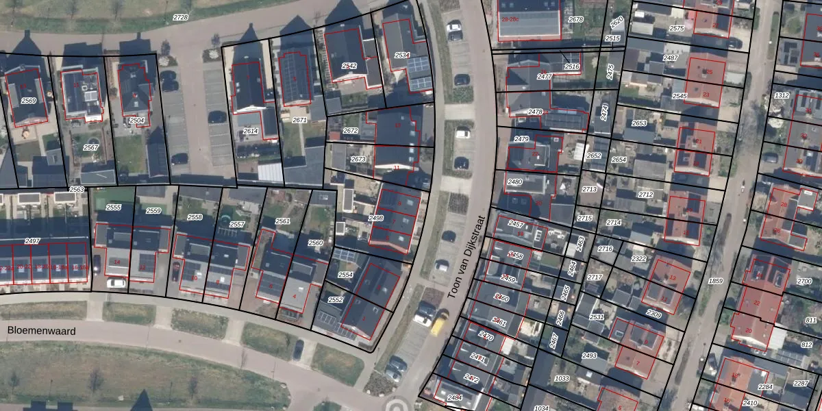 Het perceel waarop Toon van Dijkstraat 9 staat heeft een oppervlakte van 408 m². Dit is een groot perceel. De perceeloppervlakte wordt geregistreerd door het Kadaster. Gedetailleerde informatie over de maten van dit perceel kunt u vinden in het rapport Kadastrale kaart met maatvoering van Toon van Dijkstraat 9.