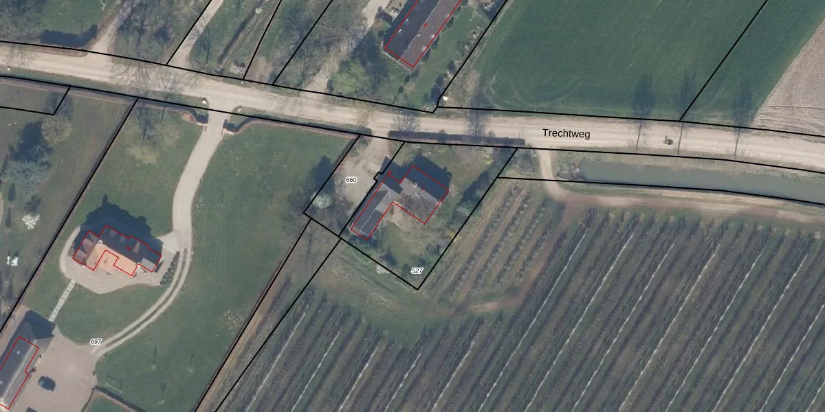 Trechtweg 7 is gelegen op kadastraal perceel WIJ01F527. Deze kadastrale aanduiding is uniek en wordt gebruikt door het Kadaster om eigendomsrechten en andere zakelijke rechten vast te leggen. Het perceel maakt onderdeel uit van de kadastrale gemeente Wijk bij Duurstede.