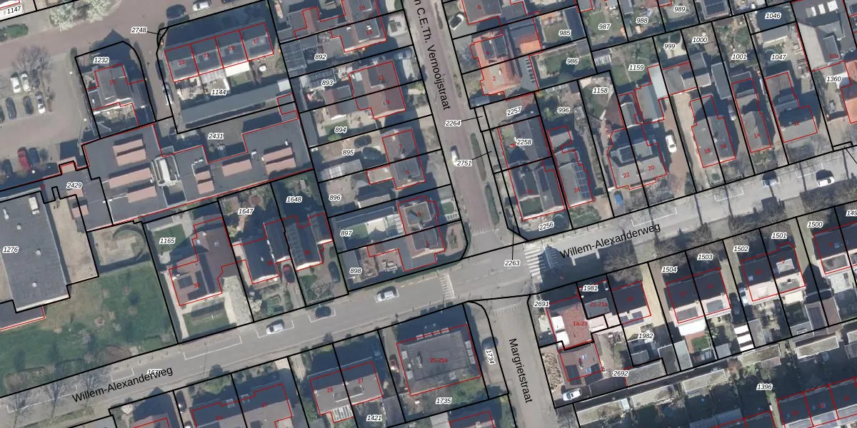 Gebruik de zoekbalk of klik op een perceel voor informatie over de adressen binnen dit perceel.