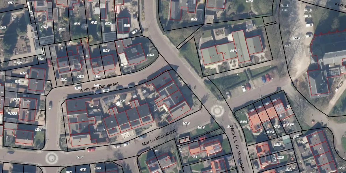 Het perceel waarop Weth C.E.Th. Vernooijstraat 39 staat heeft een oppervlakte van 2145 m². Dit is een zeer groot perceel. De perceeloppervlakte wordt geregistreerd door het Kadaster. Gedetailleerde informatie over de maten van dit perceel kunt u vinden in het rapport Kadastrale kaart met maatvoering van Weth C.E.Th. Vernooijstraat 39.