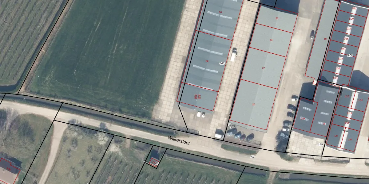 Het perceel waarop Wijkersloot 40 staat heeft een oppervlakte van 2420 m². Dit is een zeer groot perceel. De perceeloppervlakte wordt geregistreerd door het Kadaster. Gedetailleerde informatie over de maten van dit perceel kunt u vinden in het rapport Kadastrale kaart met maatvoering van Wijkersloot 40.