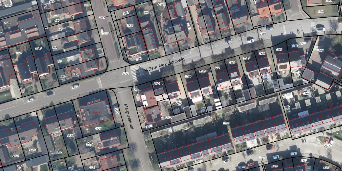 Het perceel waarop Willem-Alexanderweg 19 staat heeft een oppervlakte van 245 m². Dit is een middelgroot perceel. De perceeloppervlakte wordt geregistreerd door het Kadaster. Gedetailleerde informatie over de maten van dit perceel kunt u vinden in het rapport Kadastrale kaart met maatvoering van Willem-Alexanderweg 19.