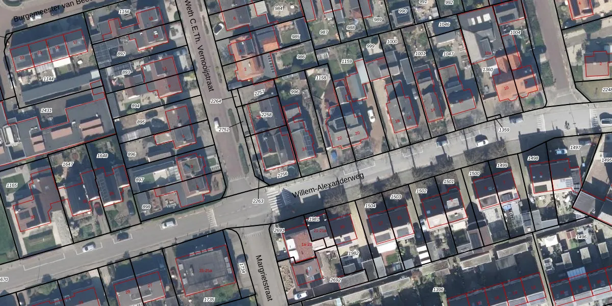 Gebruik de zoekbalk of klik op een perceel voor informatie over de adressen binnen dit perceel.