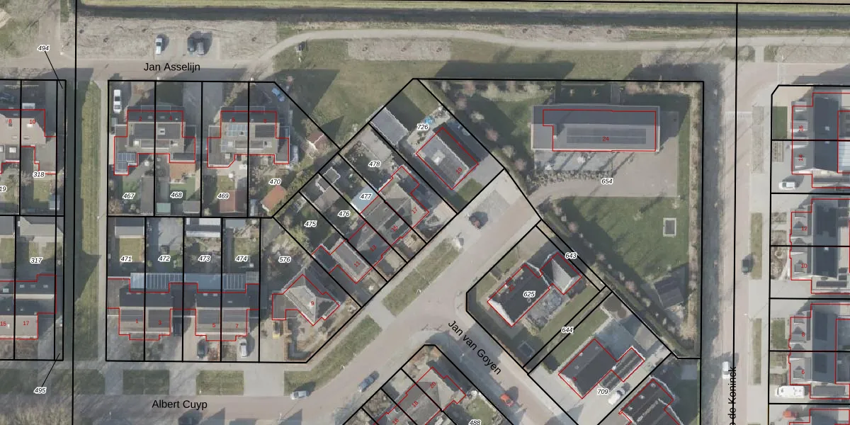 Gebruik de zoekbalk of klik op een perceel voor informatie over de adressen binnen dit perceel.