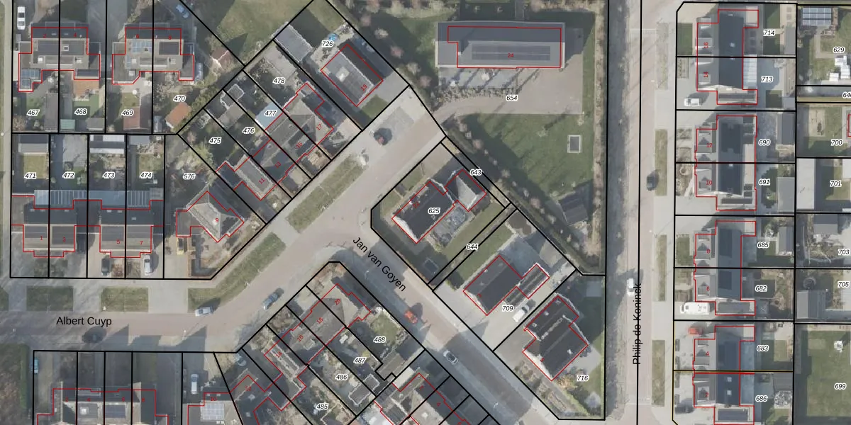 Gebruik de zoekbalk of klik op een perceel voor informatie over de adressen binnen dit perceel.