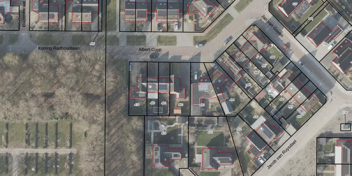 Het perceel waarop Albert Cuyp 8 staat heeft een oppervlakte van 359 m². Dit is een groot perceel. De perceeloppervlakte wordt geregistreerd door het Kadaster. Gedetailleerde informatie over de maten van dit perceel kunt u vinden in het rapport Kadastrale kaart met maatvoering van Albert Cuyp 8.