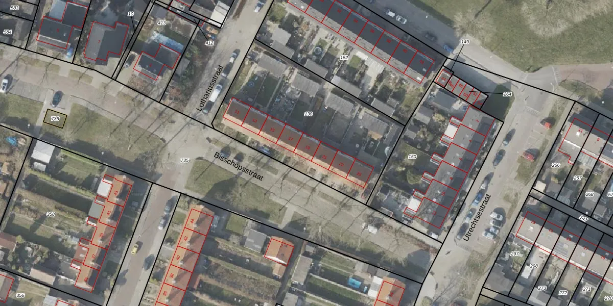 Het perceel waarop Bisschopsstraat 19 staat heeft een oppervlakte van 1734 m². Dit is een zeer groot perceel. De perceeloppervlakte wordt geregistreerd door het Kadaster. Gedetailleerde informatie over de maten van dit perceel kunt u vinden in het rapport Kadastrale kaart met maatvoering van Bisschopsstraat 19.