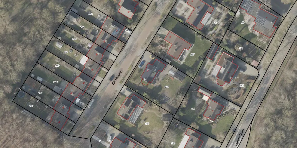 Het perceel waarop de Meute 21 staat heeft een oppervlakte van 1088 m². Dit is een zeer groot perceel. De perceeloppervlakte wordt geregistreerd door het Kadaster. Gedetailleerde informatie over de maten van dit perceel kunt u vinden in het rapport Kadastrale kaart met maatvoering van de Meute 21.