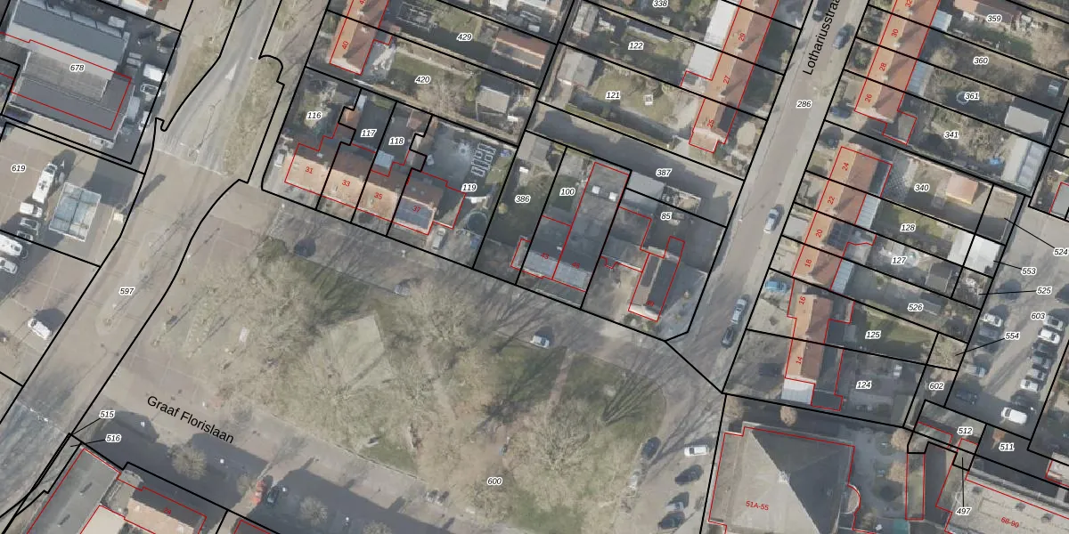 Het perceel waarop Graaf Florislaan 43 staat heeft een oppervlakte van 362 m². Dit is een groot perceel. De perceeloppervlakte wordt geregistreerd door het Kadaster. Gedetailleerde informatie over de maten van dit perceel kunt u vinden in het rapport Kadastrale kaart met maatvoering van Graaf Florislaan 43.