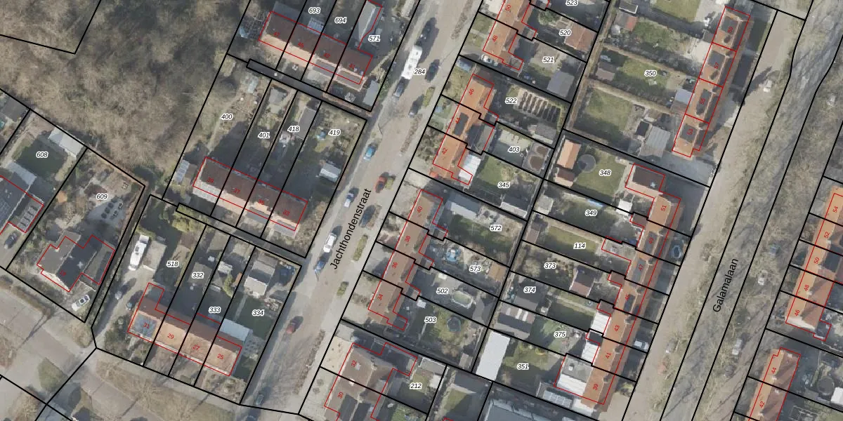 Het perceel waarop Jachthondenstraat 40 staat heeft een oppervlakte van 367 m². Dit is een groot perceel. De perceeloppervlakte wordt geregistreerd door het Kadaster. Gedetailleerde informatie over de maten van dit perceel kunt u vinden in het rapport Kadastrale kaart met maatvoering van Jachthondenstraat 40.
