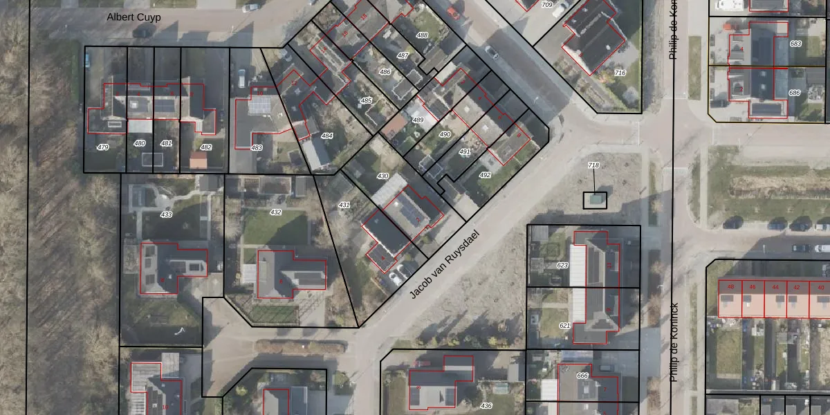 Het perceel waarop Jacob van Ruysdael 2 staat heeft een oppervlakte van 389 m². Dit is een groot perceel. De perceeloppervlakte wordt geregistreerd door het Kadaster. Gedetailleerde informatie over de maten van dit perceel kunt u vinden in het rapport Kadastrale kaart met maatvoering van Jacob van Ruysdael 2.