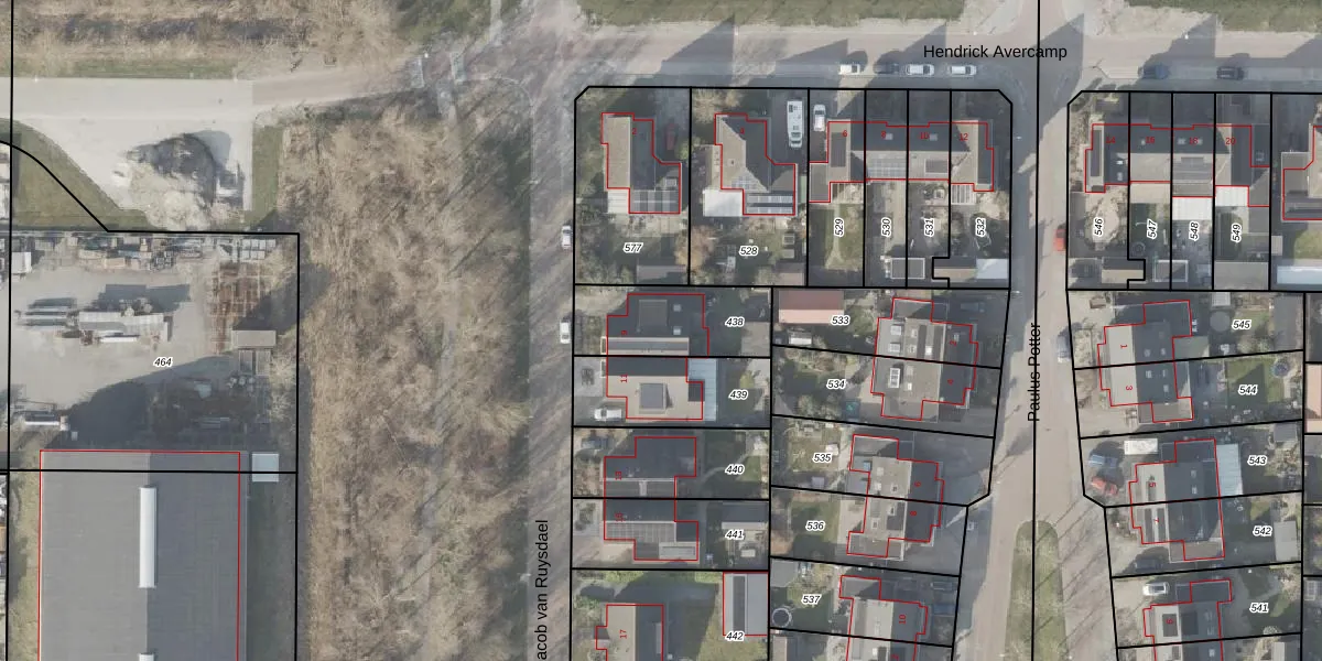 Het perceel waarop Jacob van Ruysdael 9 staat heeft een oppervlakte van 323 m². Dit is een groot perceel. De perceeloppervlakte wordt geregistreerd door het Kadaster. Gedetailleerde informatie over de maten van dit perceel kunt u vinden in het rapport Kadastrale kaart met maatvoering van Jacob van Ruysdael 9.