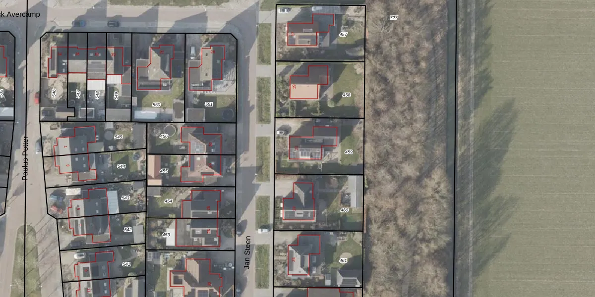 Het perceel waarop Jan Steen 21 staat heeft een oppervlakte van 570 m². Dit is een groot perceel. De perceeloppervlakte wordt geregistreerd door het Kadaster. Gedetailleerde informatie over de maten van dit perceel kunt u vinden in het rapport Kadastrale kaart met maatvoering van Jan Steen 21.
