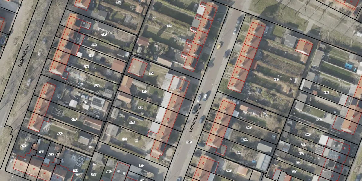 Het perceel waarop Lothariusstraat 33 staat heeft een oppervlakte van 514 m². Dit is een groot perceel. De perceeloppervlakte wordt geregistreerd door het Kadaster. Gedetailleerde informatie over de maten van dit perceel kunt u vinden in het rapport Kadastrale kaart met maatvoering van Lothariusstraat 33.