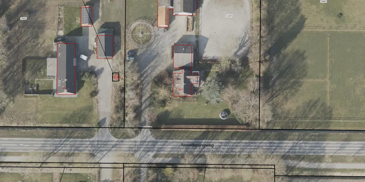 Het perceel waarop Noorderringweg 30-2 staat heeft een oppervlakte van 6162 m². Dit is een zeer groot perceel. De perceeloppervlakte wordt geregistreerd door het Kadaster. Gedetailleerde informatie over de maten van dit perceel kunt u vinden in het rapport Kadastrale kaart met maatvoering van Noorderringweg 30-2.