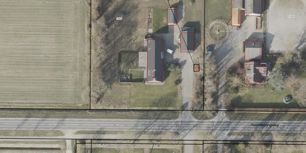 Het perceel waarop Noorderringweg 32-1 staat heeft een oppervlakte van 6134 m². Dit is een zeer groot perceel. De perceeloppervlakte wordt geregistreerd door het Kadaster. Gedetailleerde informatie over de maten van dit perceel kunt u vinden in het rapport Kadastrale kaart met maatvoering van Noorderringweg 32-1.