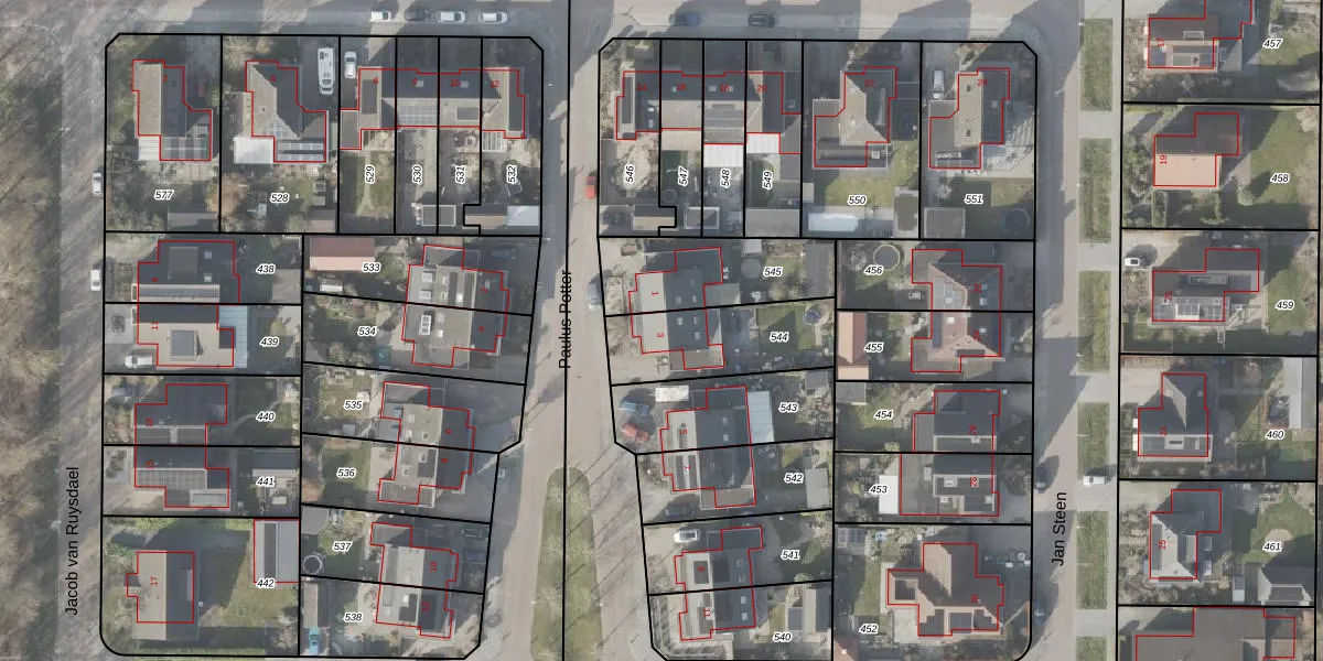 Het perceel waarop Paulus Potter 3 staat heeft een oppervlakte van 363 m². Dit is een groot perceel. De perceeloppervlakte wordt geregistreerd door het Kadaster. Gedetailleerde informatie over de maten van dit perceel kunt u vinden in het rapport Kadastrale kaart met maatvoering van Paulus Potter 3.