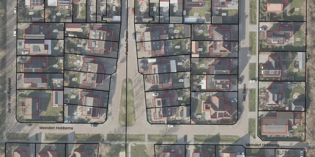 Het perceel waarop Paulus Potter 7 staat heeft een oppervlakte van 317 m². Dit is een groot perceel. De perceeloppervlakte wordt geregistreerd door het Kadaster. Gedetailleerde informatie over de maten van dit perceel kunt u vinden in het rapport Kadastrale kaart met maatvoering van Paulus Potter 7.