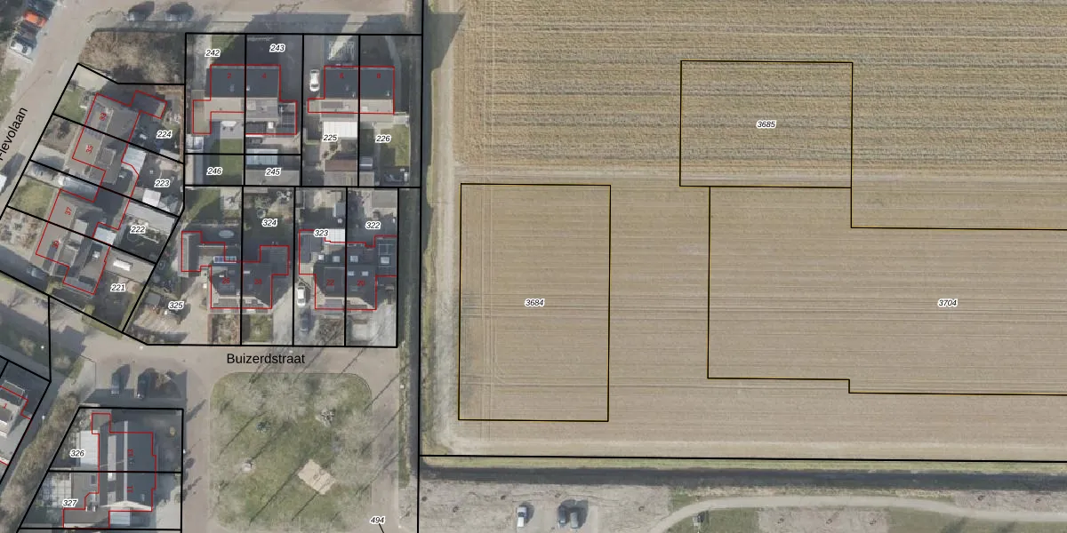 Het perceel waarop het adres ligt is NOP00-F-3684. De afkorting 'NOP00' staat voor kadastrale gemeente Noordoostpolder. Het perceel is kleiner dan gemiddeld in Noordoostpolder. Het perceel is 1240 m² groot, terwijl het gemiddelde ligt op 2,0 ha. Het grootste perceel in de kadastrale gemeente is 47,42 km². Het kleinste perceel heeft een oppervlakte van 0 m². Op het perceel liggen in totaal 12 adressen. De huidige grenzen van het perceel zijn digitaal in de Basisregistratie Kadaster (BRK) geregistreerd op 06-08-2024.
