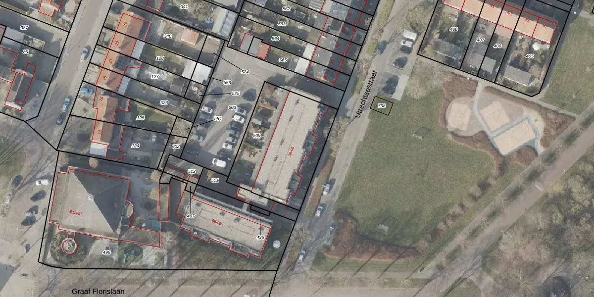 Het perceel waarop Utrechtsestraat 60 staat heeft een oppervlakte van 956 m². Dit is een groot perceel. De perceeloppervlakte wordt geregistreerd door het Kadaster. Gedetailleerde informatie over de maten van dit perceel kunt u vinden in het rapport Kadastrale kaart met maatvoering van Utrechtsestraat 60.