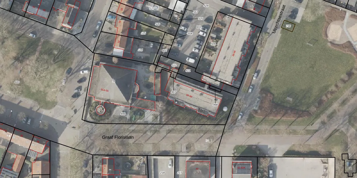 Het perceel waarop Utrechtsestraat 68 staat heeft een oppervlakte van 2442 m². Dit is een zeer groot perceel. De perceeloppervlakte wordt geregistreerd door het Kadaster. Gedetailleerde informatie over de maten van dit perceel kunt u vinden in het rapport Kadastrale kaart met maatvoering van Utrechtsestraat 68.