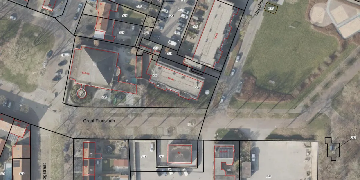 Het perceel waarop Utrechtsestraat 86 staat heeft een oppervlakte van 2442 m². Dit is een zeer groot perceel. De perceeloppervlakte wordt geregistreerd door het Kadaster. Gedetailleerde informatie over de maten van dit perceel kunt u vinden in het rapport Kadastrale kaart met maatvoering van Utrechtsestraat 86.