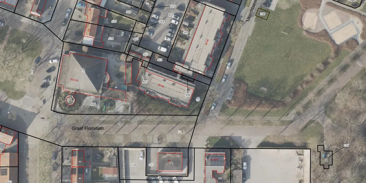 Het perceel waarop Utrechtsestraat 88 staat heeft een oppervlakte van 2442 m². Dit is een zeer groot perceel. De perceeloppervlakte wordt geregistreerd door het Kadaster. Gedetailleerde informatie over de maten van dit perceel kunt u vinden in het rapport Kadastrale kaart met maatvoering van Utrechtsestraat 88.