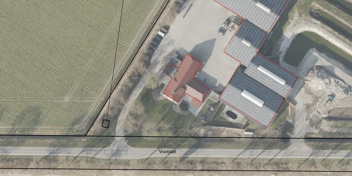 Het perceel waarop Vuurpad 8 staat heeft een oppervlakte van 2,3 ha. Dit is een zeer groot perceel. De perceeloppervlakte wordt geregistreerd door het Kadaster. Gedetailleerde informatie over de maten van dit perceel kunt u vinden in het rapport Kadastrale kaart met maatvoering van Vuurpad 8.
