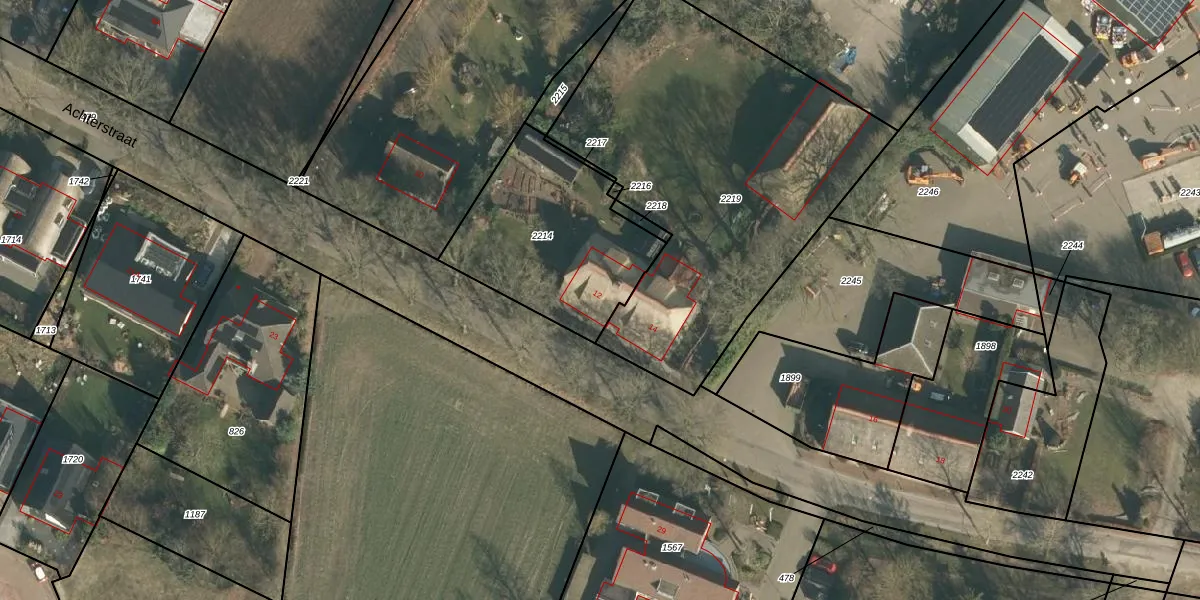 Het perceel waarop Achterstraat 12 staat heeft een oppervlakte van 719 m². Dit is een groot perceel. De perceeloppervlakte wordt geregistreerd door het Kadaster. Gedetailleerde informatie over de maten van dit perceel kunt u vinden in het rapport Kadastrale kaart met maatvoering van Achterstraat 12.