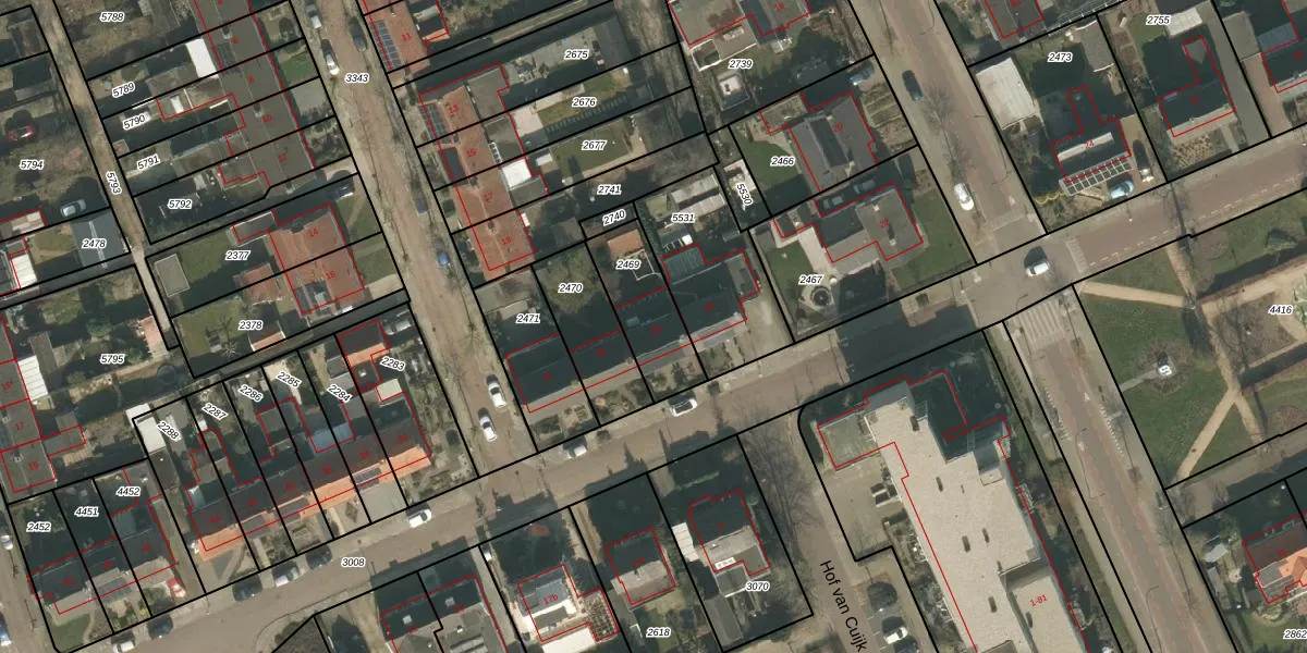 Het adres ligt op het perceel CUI00-C-2469, dat zich in de kadastrale gemeente Cuijk bevindt. Het perceel is 241 m² groot. Dat is kleiner dan de gemiddelde perceeloppervlakte in Cuijk, dat op 3869,84 m² ligt. Het grootste perceel in de kadastrale gemeente is 72,5 ha. Het kleinste perceel heeft een oppervlakte van 0 m². Er zijn geen andere adressen aanwezig op het perceel. De laatste wijziging in het de Basisregistratie Kadaster (BRK) was op 14-02-2006.