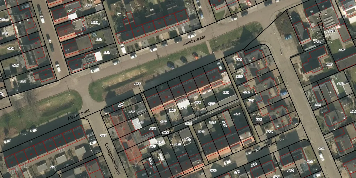 Aleidestraat 33 is gelegen op kadastraal perceel CUI00C3629. Deze kadastrale aanduiding is uniek en wordt gebruikt door het Kadaster om eigendomsrechten en andere zakelijke rechten vast te leggen. Het perceel maakt onderdeel uit van de kadastrale gemeente Cuijk.