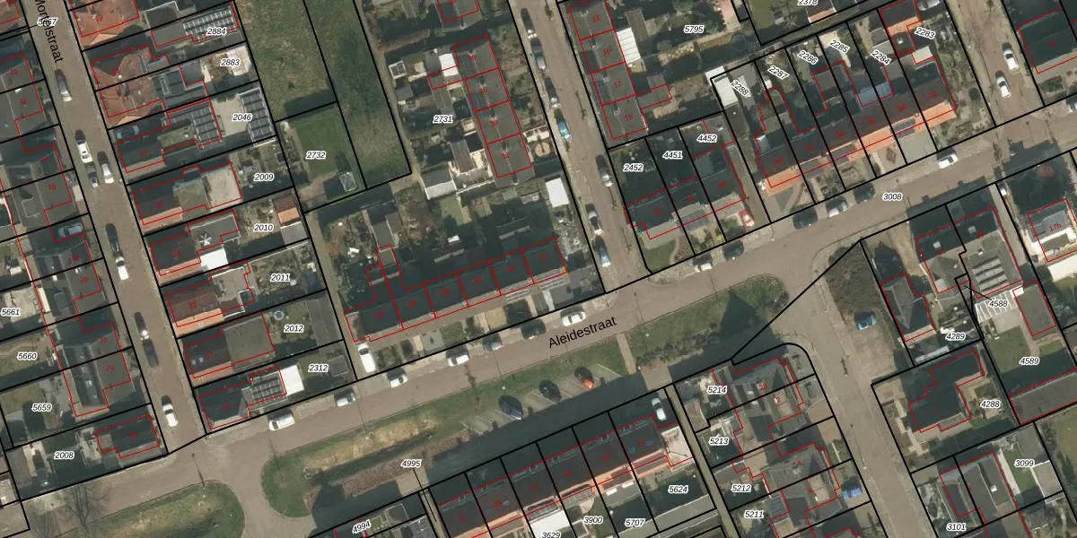 Het perceel waarop Aleidestraat 52 staat heeft een oppervlakte van 2783 m². Dit is een zeer groot perceel. De perceeloppervlakte wordt geregistreerd door het Kadaster. Gedetailleerde informatie over de maten van dit perceel kunt u vinden in het rapport Kadastrale kaart met maatvoering van Aleidestraat 52.