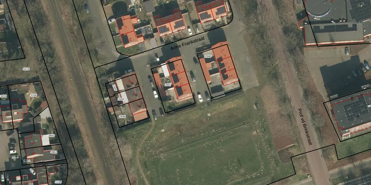Het perceel waarop Anne Frankstraat 11 staat heeft een oppervlakte van 424 m². Dit is een groot perceel. De perceeloppervlakte wordt geregistreerd door het Kadaster. Gedetailleerde informatie over de maten van dit perceel kunt u vinden in het rapport Kadastrale kaart met maatvoering van Anne Frankstraat 11.