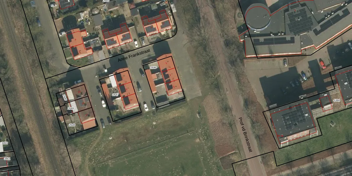 Anne Frankstraat 5 is gelegen op kadastraal perceel CUI00A2646. Deze kadastrale aanduiding is uniek en wordt gebruikt door het Kadaster om eigendomsrechten en andere zakelijke rechten vast te leggen. Het perceel maakt onderdeel uit van de kadastrale gemeente Cuijk.