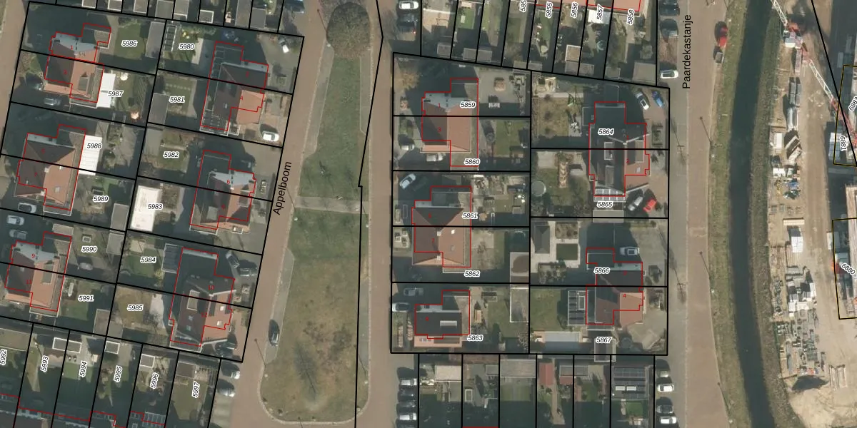 Het perceel waarop Appelboom 5 staat heeft een oppervlakte van 417 m². Dit is een groot perceel. De perceeloppervlakte wordt geregistreerd door het Kadaster. Gedetailleerde informatie over de maten van dit perceel kunt u vinden in het rapport Kadastrale kaart met maatvoering van Appelboom 5.