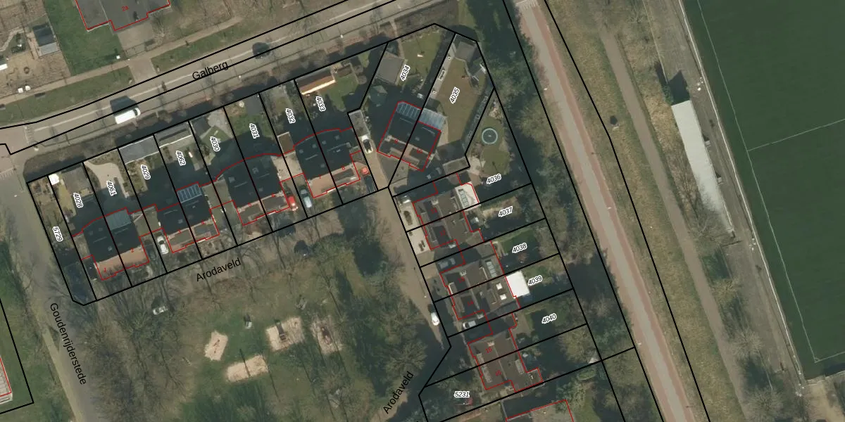 Het perceel waarop Arodaveld 11 staat heeft een oppervlakte van 400 m². Dit is een groot perceel. De perceeloppervlakte wordt geregistreerd door het Kadaster. Gedetailleerde informatie over de maten van dit perceel kunt u vinden in het rapport Kadastrale kaart met maatvoering van Arodaveld 11.