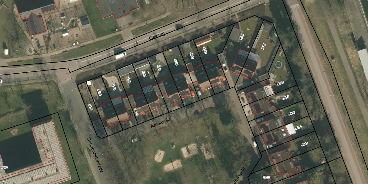 Arodaveld 6 is gelegen op kadastraal perceel CUI00A4031. Deze kadastrale aanduiding is uniek en wordt gebruikt door het Kadaster om eigendomsrechten en andere zakelijke rechten vast te leggen. Het perceel maakt onderdeel uit van de kadastrale gemeente Cuijk.