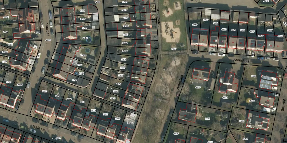 Gebruik de zoekbalk of klik op een perceel voor informatie over de adressen binnen dit perceel.