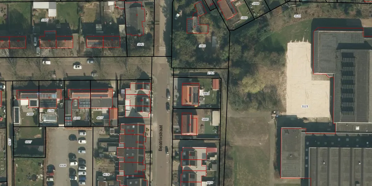 Het perceel waarop Beatrixstraat 15 staat heeft een oppervlakte van 430 m². Dit is een groot perceel. De perceeloppervlakte wordt geregistreerd door het Kadaster. Gedetailleerde informatie over de maten van dit perceel kunt u vinden in het rapport Kadastrale kaart met maatvoering van Beatrixstraat 15.