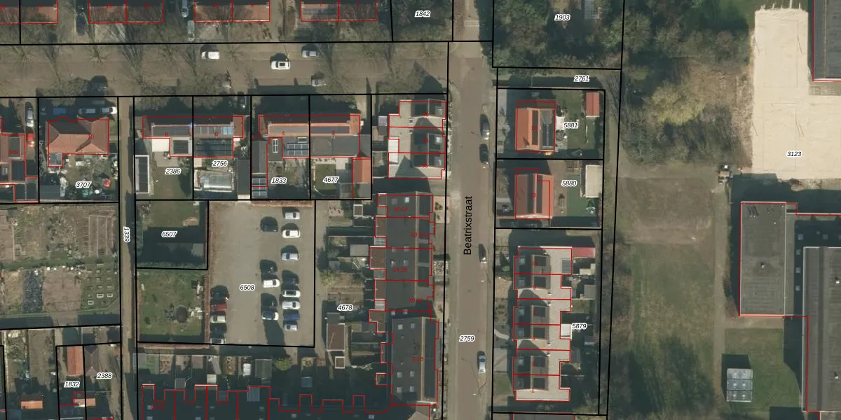 Het perceel waarop Beatrixstraat 34 staat heeft een oppervlakte van 3746 m². Dit is een zeer groot perceel. De perceeloppervlakte wordt geregistreerd door het Kadaster. Gedetailleerde informatie over de maten van dit perceel kunt u vinden in het rapport Kadastrale kaart met maatvoering van Beatrixstraat 34.