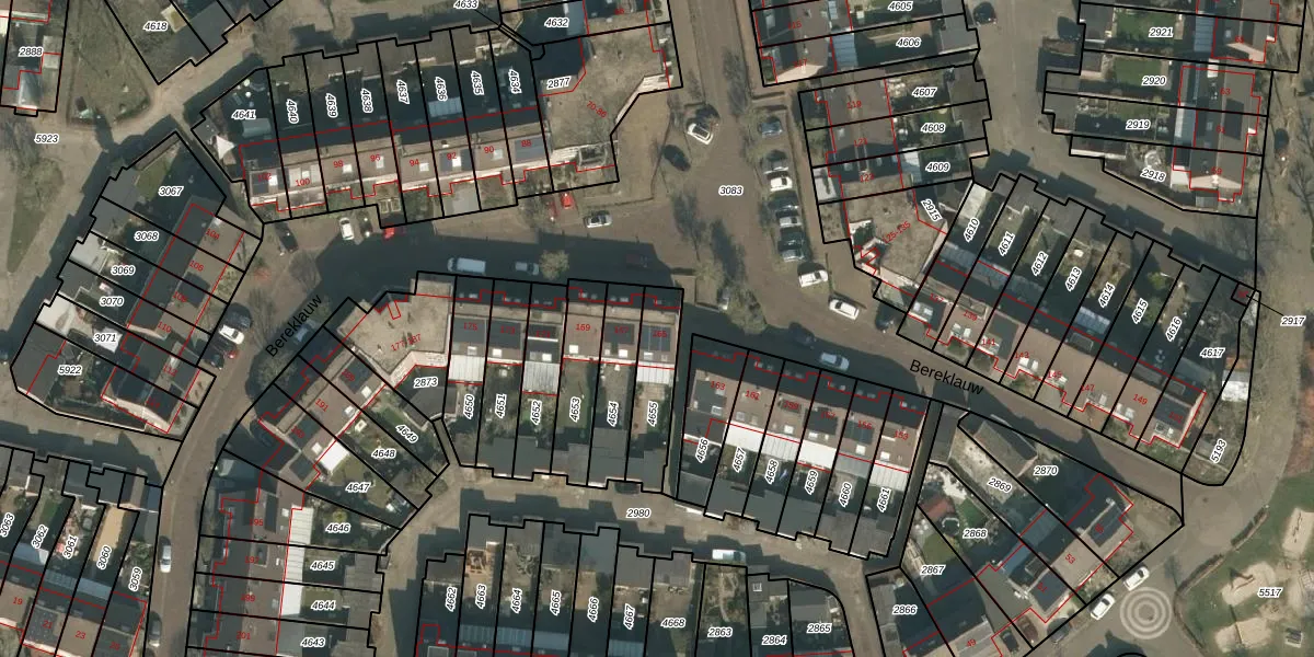 Het perceel waarop Bereklauw 165 staat heeft een oppervlakte van 182 m². Dit is een middelgroot perceel. De perceeloppervlakte wordt geregistreerd door het Kadaster. Gedetailleerde informatie over de maten van dit perceel kunt u vinden in het rapport Kadastrale kaart met maatvoering van Bereklauw 165.