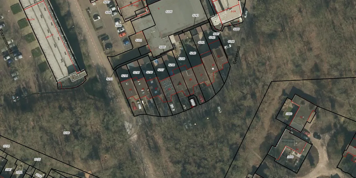 Het perceel waarop Berenkuil 30 staat heeft een oppervlakte van 222 m². Dit is een middelgroot perceel. De perceeloppervlakte wordt geregistreerd door het Kadaster. Gedetailleerde informatie over de maten van dit perceel kunt u vinden in het rapport Kadastrale kaart met maatvoering van Berenkuil 30.