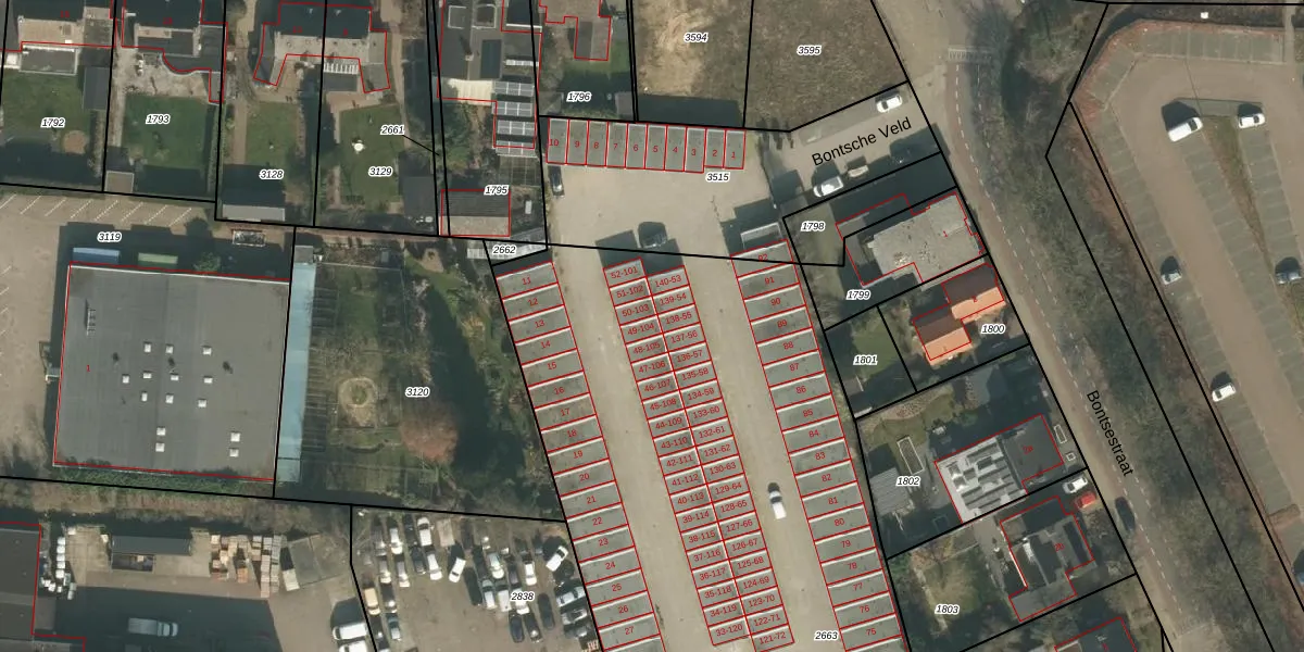 Bontsche Veld 104 is gelegen op kadastraal perceel CUI00B2663. Deze kadastrale aanduiding is uniek en wordt gebruikt door het Kadaster om eigendomsrechten en andere zakelijke rechten vast te leggen. Het perceel maakt onderdeel uit van de kadastrale gemeente Cuijk.