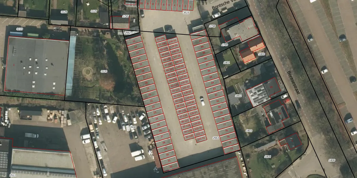 Bontsche Veld 111 is gelegen op kadastraal perceel CUI00B2663. Deze kadastrale aanduiding is uniek en wordt gebruikt door het Kadaster om eigendomsrechten en andere zakelijke rechten vast te leggen. Het perceel maakt onderdeel uit van de kadastrale gemeente Cuijk.